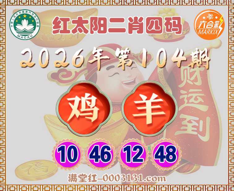 104期:《红太阳》 🍎二肖四码🍎【鸡羊】【10.46.12.48】开:00准